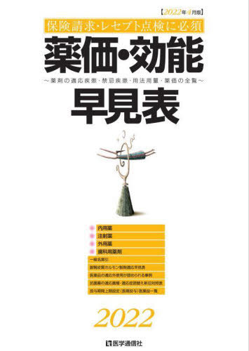 【送料無料】[本/雑誌]/薬価・効能早見表 保険請求・レセプト点検に必須 2022年4月版 薬剤の適応疾患・禁忌疾患・用法用量・薬価の全覧/医学通信社