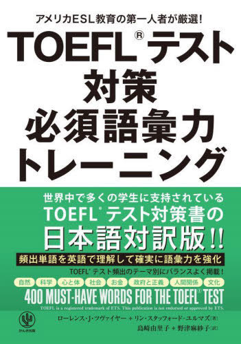 ローレンス・J・ツヴァイヤー/著 リン・スタッフォード‐ユルマズ/著 島崎由里子/訳 野津麻紗子/訳/TOEFLテスト対策必須語彙力トレーニング アメリカESL教育の第一人者が厳選!、メディア:BOOK、発売日:2022/06、重量:340g、商品コード:NEOBK-2745002、JANコード/ISBNコード:9784761276072