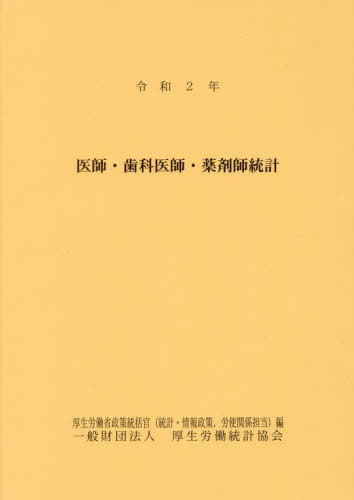 【送料無料】[本/雑誌]/医師・歯科医師・薬剤師統計 令和2年/厚生労働省政策統括官(統計・情報政策、労使関係担当)/編