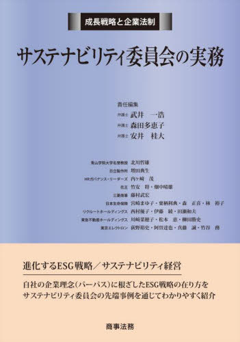 武井一浩/責任編集 森田多恵子/責任編集 安井桂大/責任編集 北川哲雄/〔ほか述〕/サステナビリティ委員会の実務 (成長戦略と企業法制)、メディア:BOOK、発売日:2022/08、重量:313g、商品コード:NEOBK-2768966、JANコード/ISBNコード:9784785729820