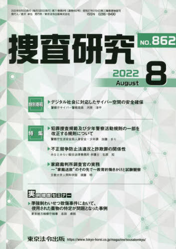 東京法令出版/捜査研究 862、メディア:BOOK、発売日:2022/08、重量:500g、商品コード:NEOBK-2778434、JANコード/ISBNコード:9784809099533