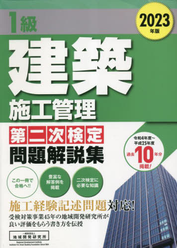 地域開発研究所/1級建築施工管理第二次検定問題解説集 2023年版、メディア:BOOK、発売日:2023/04、重量:600g、商品コード:NEOBK-2854624、JANコード/ISBNコード:9784886154040