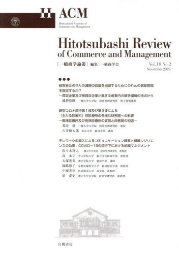 【送料無料】[本/雑誌]/一橋商学論叢 Vol.18No.2(2023November)/一橋商学会/編集