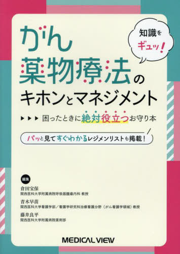 倉田宝保/編集 青木早苗/編集 藤井良平/編集/がん薬物療法のキホンとマネジメント 知識をギュッ! 困ったときに絶対役立つお守り本、メディア:BOOK、発売日:2023/12、重量:312g、商品コード:NEOBK-2934062、JANコード/ISBNコード:9784758322386