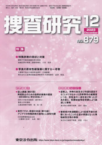 [本/雑誌]/捜査研究 NO.879(2023Dec.)/東京法令出版
