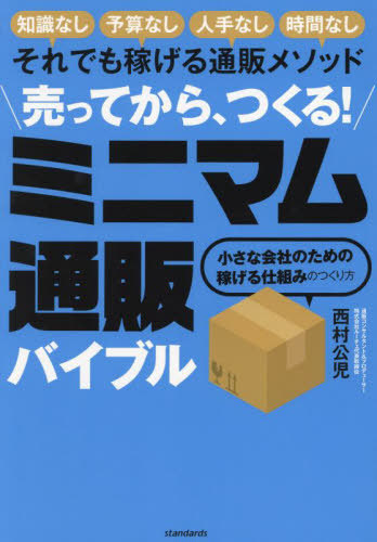西村公児/著/売ってから、つくる!ミニマム通販バイブル 知識なし予算なし人手なし時間なしそれでも稼げる通販メソッド 小さな会社のための稼げる仕組みのつくり方、メディア:BOOK、発売日:2024/02、重量:340g、商品コード:NEOBK-2949937、JANコード/ISBNコード:9784866365886