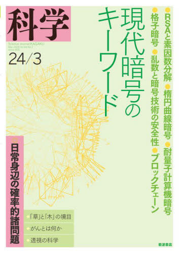 | 【特集】現代暗号のキーワード 現代暗号の展開と応用......高木 剛 RSAと素因数分解......青木和麻呂 耐量子計算機暗号――標準化動向とアイデア......國廣 昇 楕円曲線暗号と格子暗号の仕組み......安田雅哉 乱数と暗号技術の安全性......縫田光司 ブロックチェーン――暗号技術がもたらす信頼ある社会......松尾真一郎 [巻頭エッセイ] 博物館の役割と経営難......篠田謙一 がんとは何か――分子からのアプローチ1......野田 亮 寄生虫ハリガネムシは宿主カマキリをどのようにして操るのか――宿主からの遺伝子水平伝播の可能性......三品達平・佐藤拓哉 時差ぼけがストレス神経系を動かすとき......岡村 均・山口賀章・冨永恵子 透視の科学――逆問題の解析解が電池を透視,寿命を予言......木村建次郎・松田聖樹・鈴木章吾・木村憲明 ウナギの不思議――楽に海水に適応できる超能力......竹井祥郎 力学のレンズから見えた「草」と「木」の境目......佐藤太裕 [新連載] 日常身辺の確率的諸問題1 私が結婚できる確率はいくらか?......原 啓介 [連載] 数学者の思案22 数学と入学試験......河東泰之 3.11以後の科学リテラシー134......牧野淳一郎 研究者,生活を語る11【番外編インタビュー第2回】 「仕事より家族が大事」であっていい――田島節子さんに聞く......田島節子 [科学通信] 黄砂が海に与えるプラスの影響――陸と大気と海の科学,時々古気候......長島佳菜 亜種どうしで異なる尿臭――イリオモテヤマネコとツシマヤマネコ......市沢翔太・上野山怜子・宮崎雅雄 次号予告 |