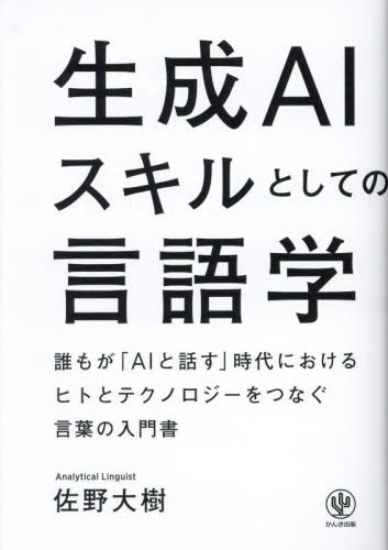 佐野大樹/著/生成AIスキルとしての言語学 誰もが「AIと話す」時代におけるヒトとテクノロジーをつなぐ言葉の入門書、メディア:BOOK、発売日:2024/02、重量:340g、商品コード:NEOBK-2950542、JANコード/ISBNコード:9784761277192