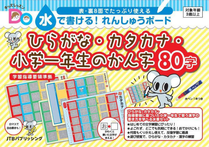 JTBパブリッシング/キッズレッスンDo 水で書ける!れんしゅうボード ひらがな・カタカナ・小学一年生のかん字80字 (キッズレッスンDo)、メディア:BOOK、発売日:2024/03、重量:340g、商品コード:NEOBK-2959754、JANコード/ISBNコード:9784533157660