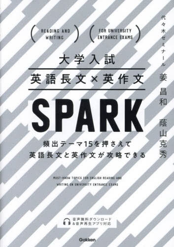 姜昌和/著 蔭山克秀/著/大学入試英語長文×英作文SPARK 頻出テーマ15を押さえて英語長文と英作文が攻略できる、メディア:BOOK、発売日:2024/03、重量:340g、商品コード:NEOBK-2963638、JANコード/ISBNコード:9784053047663
