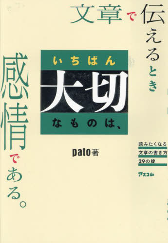 pato/著/文章で伝えるときいちばん大切なものは、感情である。 読みたくなる文章の書き方29の掟、メディア:BOOK、発売日:2024/03、重量:340g、商品コード:NEOBK-2965023、JANコード/ISBNコード:9784776213260