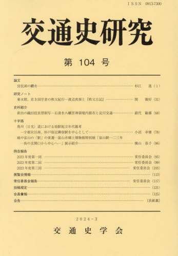 交通史学会/交通史研究 104、メディア:BOOK、発売日:2024/03、重量:450g、商品コード:NEOBK-2965528、JANコード/ISBNコード:9784642094580