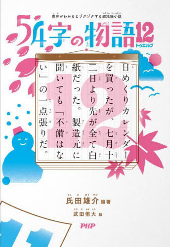 | ある人が日めくりカレンダーを買ったところ、7月12日まではしっかりと日付が書かれていましたが、7月13日から先はページが全部白紙でした。カレンダーを作った会社に「これは何かの間違いですか?」と尋ねても、会社は「不備はない」と答えるだけ。7月12日にいったい何が起こるのでしょうか?さて、この『54字の物語12』では、祝日や記念日、日本の風物詩をテーマにした物語を収録しています。カレンダーをめくるように1年をめぐる、めくるめく超短編の世界をお楽しみください。 |