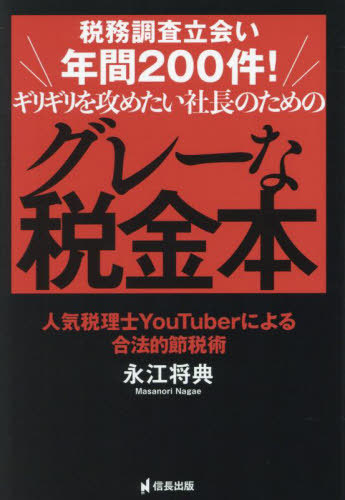 永江将典/著/税務調査立会い年間200件!ギリギリを攻めたい社長のためのグレーな税金本 人気税理士YouTuberによる合法的節税術、メディア:BOOK、発売日:2024/09、重量:340g、商品コード:NEOBK-3015705、JANコード/ISBNコード:9784801481084