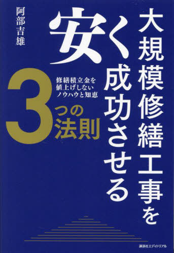 阿部吉雄/著/大規模修繕工事を安く成功させる3つの法則 修繕積立金を値上げしないノウハウと知恵、メディア:BOOK、発売日:2024/11、重量:500g、商品コード:NEOBK-3039284、JANコード/ISBNコード:9784866771564