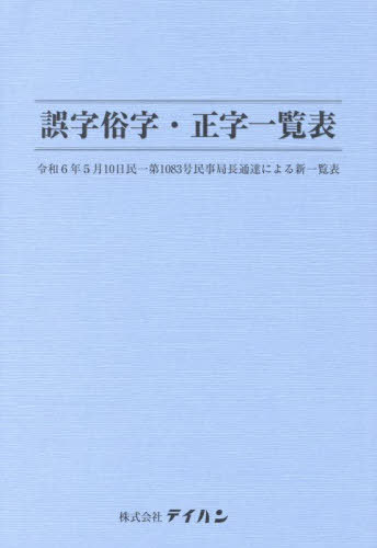 テイハン法令編集部戸/誤字俗字・正字一覧表、メディア:BOOK、発売日:2024/08、重量:133g、商品コード:NEOBK-3046413、JANコード/ISBNコード:9784860961817