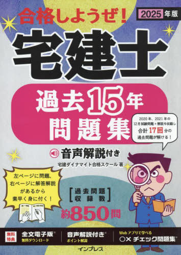 宅建ダイナマイト合格スクール/著/合格しようぜ!宅建士過去15年問題集 2025年版、メディア:BOOK、発売日:2024/12、重量:600g、商品コード:NEOBK-3049564、JANコード/ISBNコード:9784295020790