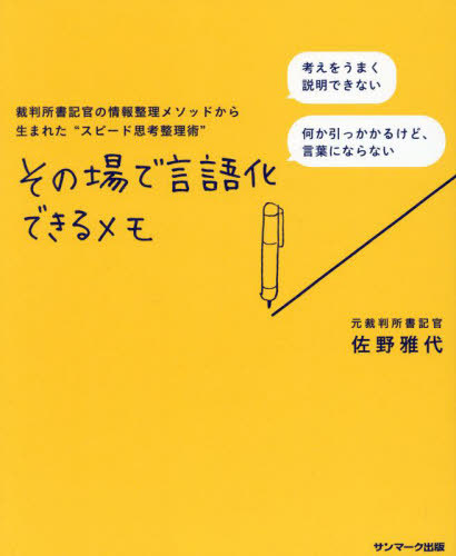 佐野雅代/著/その場で言語化できるメモ 裁判所書記官の情報整理メソッドから生まれた“スピード思考整理術”、メディア:BOOK、発売日:2025/01、重量:340g、商品コード:NEOBK-3059593、JANコード/ISBNコード:9784763141934