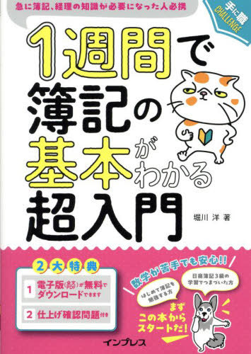 堀川洋/著/1週間で簿記の基本がわかる超入門 急に簿記、経理の知識が必要になった人必携 (手に職CHALLENGE)、メディア:BOOK、発売日:2025/03、重量:500g、商品コード:NEOBK-3072783、JANコード/ISBNコード:9784295021209