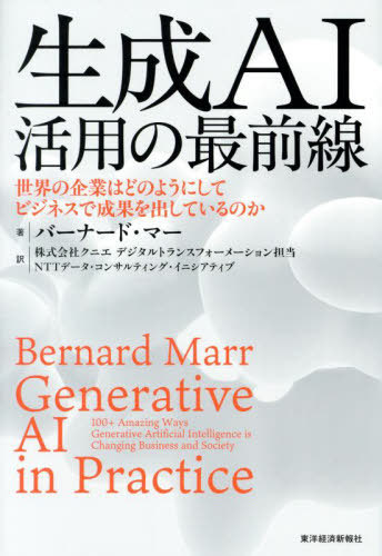 バーナード・マー/著 クニエデジタルトランスフォーメーション担当/訳 NTTデータ・コンサルティング・イニシアティブ/訳/生成AI活用の最前線 世界の企業はどのようにしてビジネスで成果を出しているのか / 原タイトル:Generative AI in Practice、メディア:BOOK、発売日:2025/03、重量:340g、商品コード:NEOBK-3072907、JANコード/ISBNコード:9784492558454