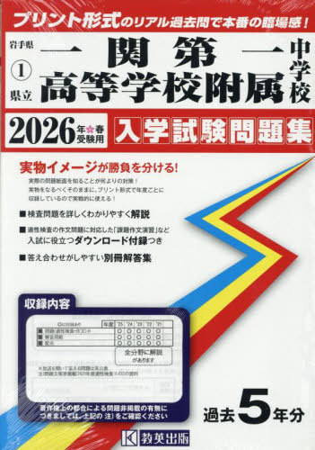 教英出版/県立一関第一高等学校附属中学校 入学試験問題集 2026年春受験用 プリント形式のリアル過去問で本番の臨場感! (岩手県 中学校 入学試験問題集 1)、メディア:BOOK、発売日:2025/04、重量:475g、商品コード:NEOBK-3086308、JANコード/ISBNコード:9784290183889