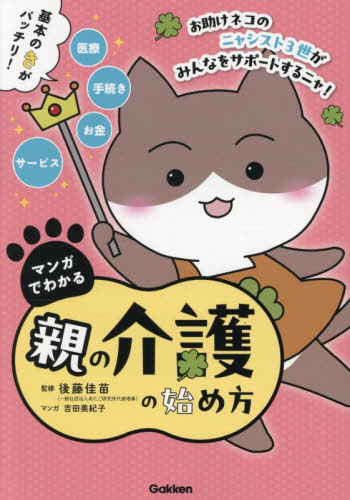 | もしも、親の介護が必要になったら...!?父が脳卒中で倒れたコトミ。母が軽度認知障害の診断を受けたチエ。遠方の一人暮らしの母が骨折したマイ。困っている3人の主人公をお助けネコ・ニャシスト3世がかわいくも適切にアシストします。親の介護の始め方をわかりやすく徹底解説するニャ! |