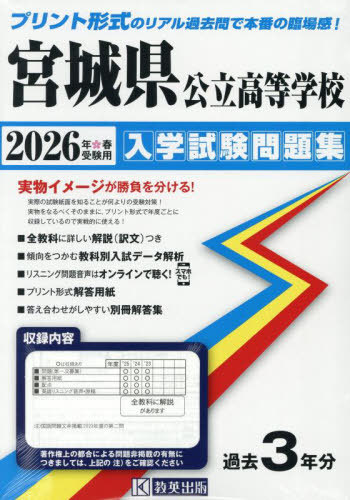 教英出版/宮城県公立高等学校 入学試験問題集 2026年春受験用プリント形式のリアル過去問で本番の臨場感!、メディア:BOOK、発売日:2025/06、重量:500g、商品コード:NEOBK-3110015、JANコード/ISBNコード:9784290187085