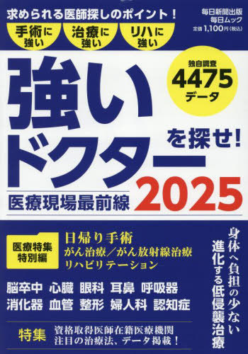 毎日新聞出版/2025 医療現場最前線強いドクターを探せ (毎日ムック)、メディア:BOOK、発売日:2025/07、重量:340g、商品コード:NEOBK-3112898、JANコード/ISBNコード:9784620794839