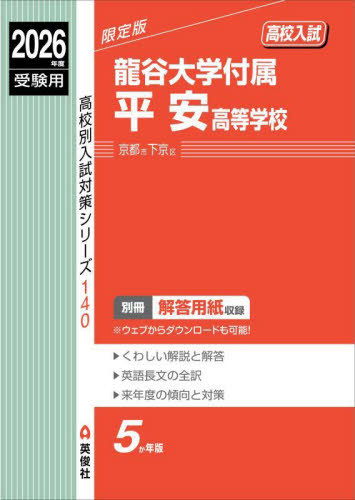 【送料無料】[本/雑誌]/龍谷大学付属平安高等学校 高校入試 2026年度受験用 (高校別入試対策シリーズ 140)/英俊社
