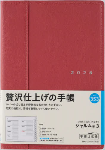 高橋書店/高橋書店 手帳 シャルム(R) 3 (ネオレッド) B6判 ウィークリー No.353 2026年 1月始まり、メディア:BOOK、発売日:2025/08、重量:286g、商品コード:NEOBK-3121701、JANコード/ISBNコード:9784471853532