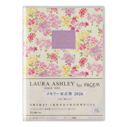 | 花柄で人気のイギリスのブランドLAURA ASHLEYの家計簿シリーズ 【月間ページ】見開き1ヵ月のブロックタイプ(月曜始まり)。 【レイアウト】「食費」などの費目ごとに管理するベーシックな週計タイプ。「年間収支記録表」「医療費の控え」など便利な巻末資料付き。 持ち運びにも便利なA6サイズで、手帳感覚で使用できます。 ※表紙を変更しました ■サイズ(mm):155×110×11(mm) ■総ページ数:208ページ ■用紙色:クリーム用紙 ■重さ:143g ■年間カレンダー:2026年・2027年 ■暦情報 Week数:- 六曜:月・週 月相:- 24節気:月・週 ■月間予定表 掲載期間:2025年12月〜2026年12月 形式:カレンダー 始まり曜日:月曜 週切りレイアウト:6週切り ■週間予定表 掲載期間:2025年12/1が入る週〜2027年1月第2週 形式:週計 始まり曜日:月曜 時間表記:- 時間目盛:- ■その他 インデックス:印刷 罫ページ数:本冊:15ページ/ 分冊:- 方眼罫:本冊:-/ 分冊:- ドット方眼:本冊:-/ 分冊:- しおり本数:2本 ペンホルダー:有 ポケット有無:内側左あおりポケット ■掲載資料(本冊):アドレス・贈答のマナー・知っておきたい慶祝行事・年間収支記録表・ボーナスの控え・クレジットカードの利用控え・貯蓄の控え・医療費の控え・光熱・水道料金などの控え・慶弔費の控え・贈答の控え・購入品の安値控え・金融口座の控え・年齢早見表 ■掲載資料(分冊):- ■付属品:- ■日本製 |