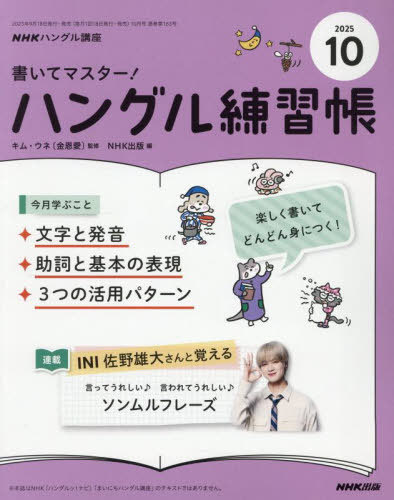 NHK出版/NHKハングル講座書いてマスター! ハングル練習帳 2025年10月号、メディア:BOOK、発売日:2025/09、重量:200g、商品コード:NEOBK-3130572、JANコード/ISBNコード:4910094351055