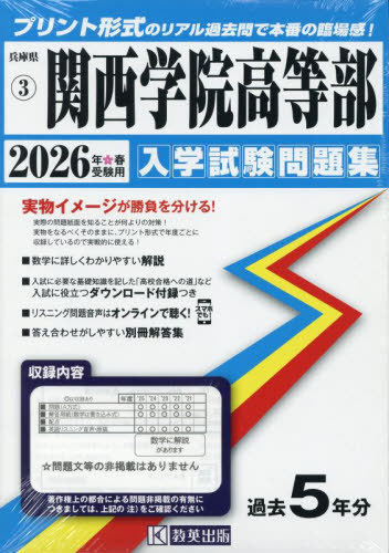 教英出版/関西学院高等部 入学試験問題集 2026年春受験用 プリント形式のリアル過去問で本番の臨場感! (兵庫県 入学試験問題集 3)、メディア:BOOK、発売日:2025/08、重量:500g、商品コード:NEOBK-3131758、JANコード/ISBNコード:9784290181984