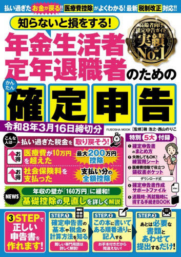 磯浩之/監修 西山のりこ/監修/令和8年 年金生活者・定年退職者のためのかんたん確定申告 (FUSOSHA)、メディア:BOOK、発売日:2025/10、重量:500g、商品コード:NEOBK-3137894、JANコード/ISBNコード:9784594624279