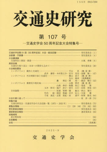 交通史学会/交通史研究 107、メディア:BOOK、発売日:2025/09、重量:450g、商品コード:NEOBK-3141227、JANコード/ISBNコード:9784642094610