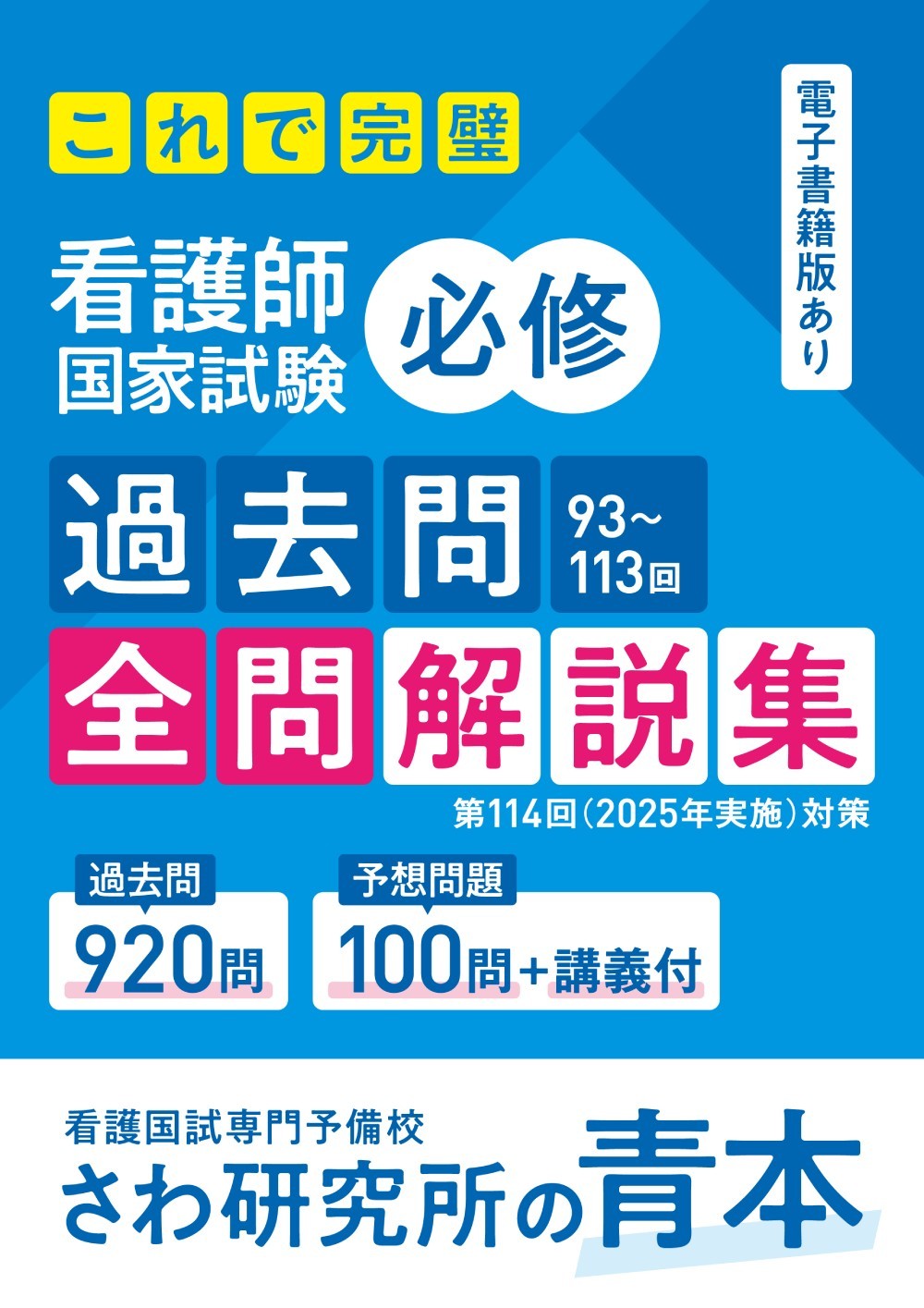 さわ研究所/編集/【2026年度向け最新版ではありません/新品】 [さわ研究所の青本] これで完璧 看護師国家試験 必修 過去問 93〜113回 全問解説集 第114回 (2025年実施) 対策、メディア:BOOK、発売日:2024/04、重量:850g、商品コード:NEOBK-3141279、JANコード/ISBNコード:9784991356124