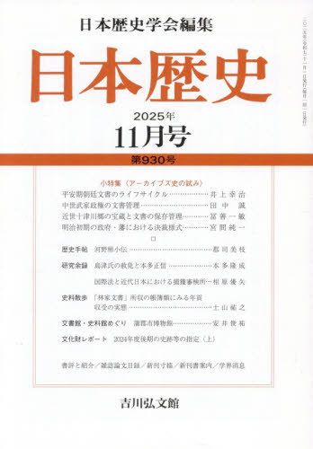 吉川弘文館/日本歴史 2025年11月号、メディア:BOOK、発売日:2025/10、重量:195g、商品コード:NEOBK-3141926、JANコード/ISBNコード:4910069171152