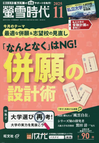 旺文社/螢雪時代 2025年11月号、メディア:BOOK、発売日:2025/10、重量:380g、商品コード:NEOBK-3141978、JANコード/ISBNコード:4910033611158