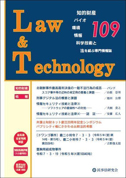 民事法研究会/Law&Technology 109、メディア:BOOK、発売日:2025/10、重量:500g、商品コード:NEOBK-3142997、JANコード/ISBNコード:9784865567120