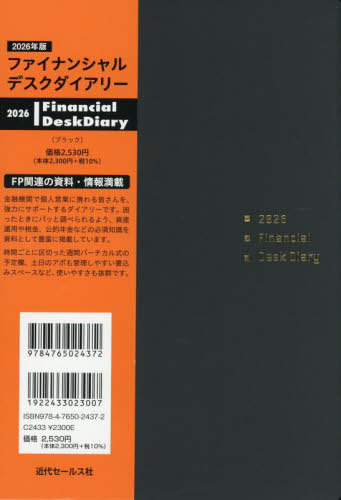 近代セールス社/ファイナンシャルデスクダイアリー 2026年版 ブラック、メディア:BOOK、発売日:2025/10、重量:380g、商品コード:NEOBK-3144267、JANコード/ISBNコード:9784765024372