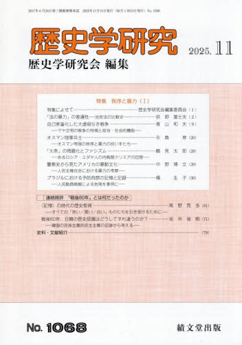 績文堂出版/歴史学研究 2025年11月号、メディア:BOOK、発売日:2025/10、重量:130g、商品コード:NEOBK-3146416、JANコード/ISBNコード:4910096811151