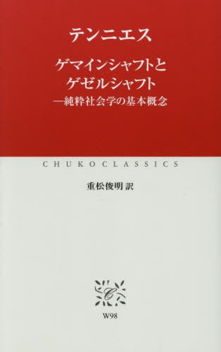 テンニエス/〔著〕 重松俊明/訳/ゲマインシャフトとゲゼルシャフト 純粋社会学の基本概念 / 原タイトル:Gemeinschaft und Gesellschaftの抄訳 (中公クラシックス)、メディア:BOOK、発売日:2025/10、重量:190g、商品コード:NEOBK-3146626、JANコード/ISBNコード:9784121601872