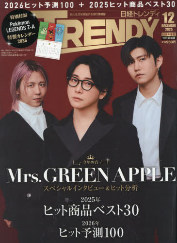 日経BPマーケティング/日経トレンディ 2025年12月号増刊 Mrs. GREEN APPLE 特別表紙版 【付録】 『Pokemon LEGENDS Z-A』2026年特製カレンダー、メディア:BOOK、発売日:2025/11、重量:620g、商品コード:NEOBK-3148433、JANコード/ISBNコード:4910171021253