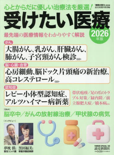 読売新聞医療部/編/2026 受けたい医療 (YOMIURI)、メディア:BOOK、発売日:2025/10、重量:340g、商品コード:NEOBK-3150727、JANコード/ISBNコード:9784643250213