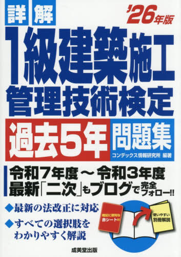 コンデックス情報研究所/編著/詳解1級建築施工管理技術検定過去5年問題集 2026年版、メディア:BOOK、発売日:2025/12、重量:600g、商品コード:NEOBK-3162809、JANコード/ISBNコード:9784415240862