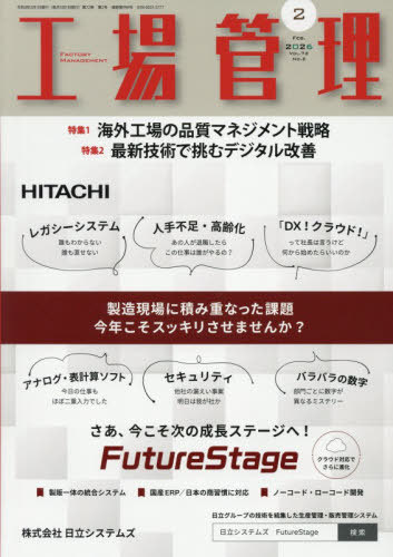 日刊工業新聞社/工場管理 2026年2月号、メディア:BOOK、発売日:2026/01、重量:330g、商品コード:NEOBK-3170078、JANコード/ISBNコード:4912037630265