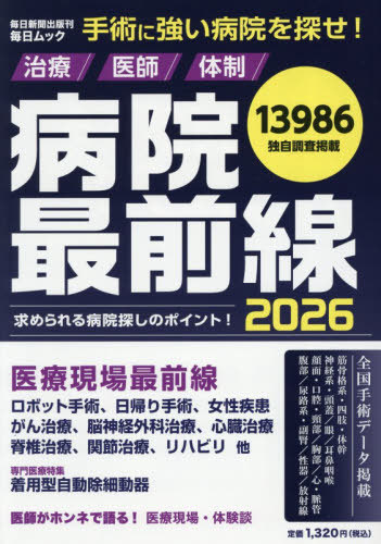 毎日新聞出版/2026 病院最前線 (毎日ムック)、メディア:BOOK、発売日:2026/01、重量:340g、商品コード:NEOBK-3173740、JANコード/ISBNコード:9784620794860