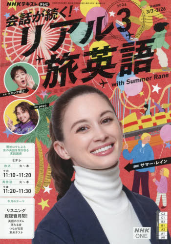 NHK出版/NHKテレビ会話が続く!リアル旅英語 2026年3月号、メディア:BOOK、発売日:2026/02、重量:200g、商品コード:NEOBK-3180451、JANコード/ISBNコード:4912095630368