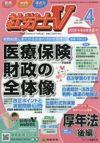日本法令/社労士V 2026年4月号、メディア:BOOK、発売日:2026/02、重量:250g、商品コード:NEOBK-3181070、JANコード/ISBNコード:4912047330469