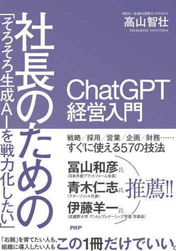 高山智壮/著/「そろそろ生成AIを戦力化したい」社長のためのChatGPT経営入門、メディア:BOOK、発売日:2026/02、重量:500g、商品コード:NEOBK-3187564、JANコード/ISBNコード:9784569860886